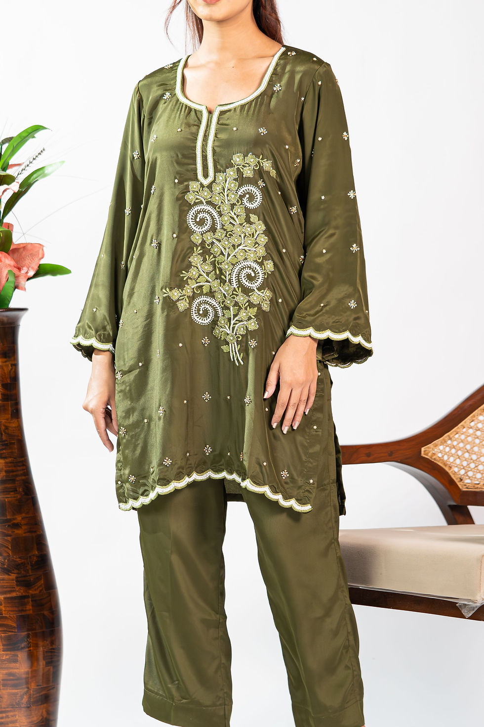 OLIVE NOOR HAND EMBROIDERY KURTA SET