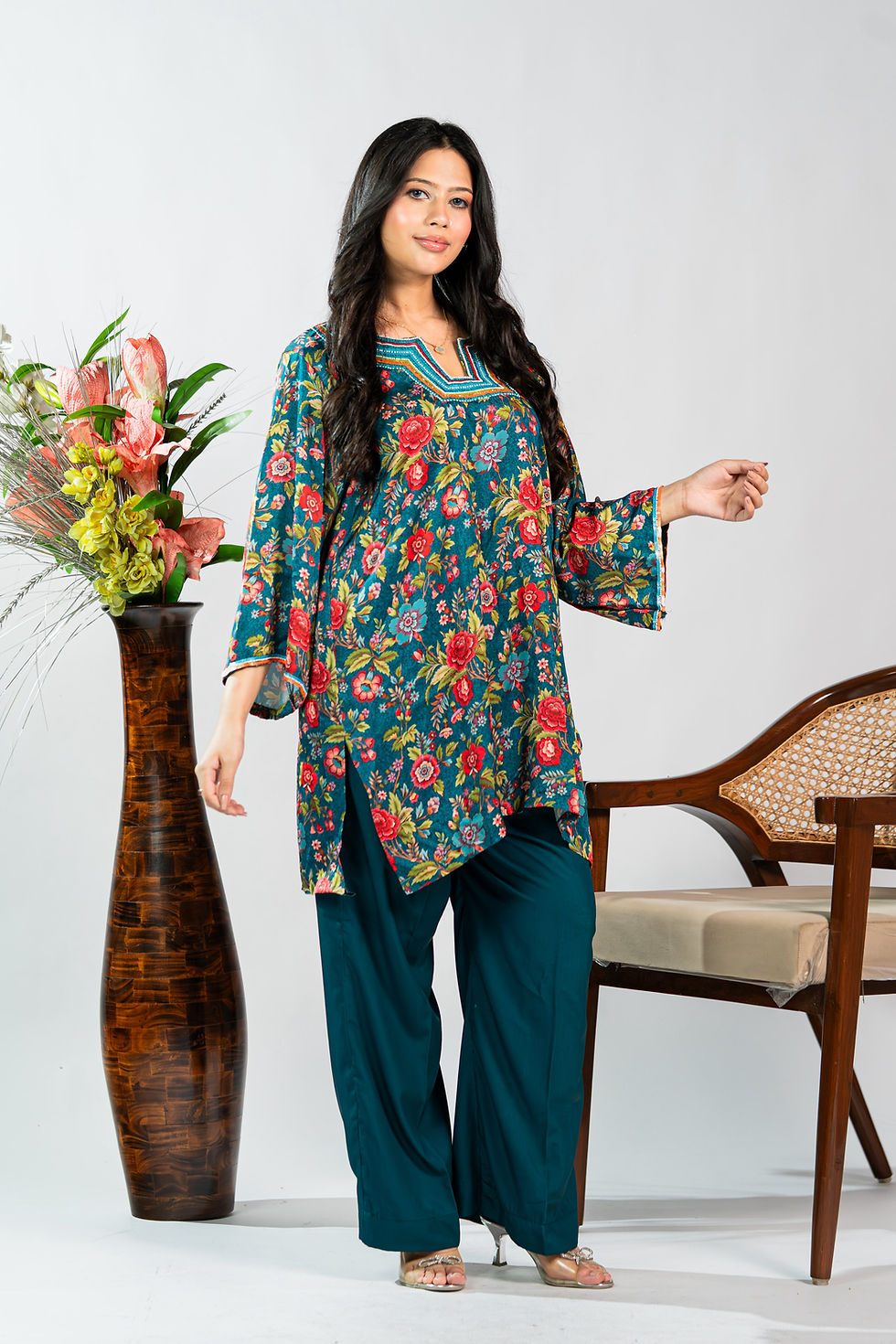 FLAMINGO EMBROIDERY FLORAL CO-ORD SET